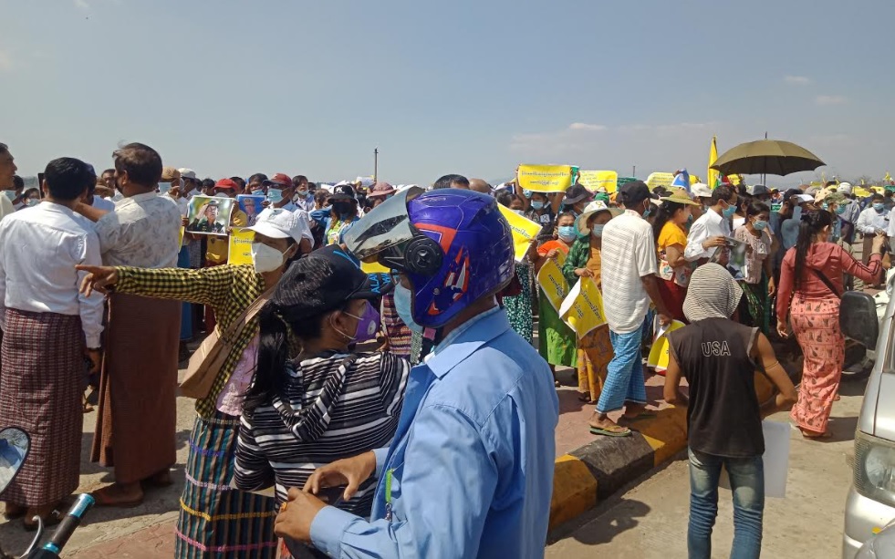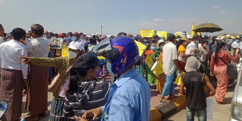 မော်လမြိုင်မြို့ပေါ်သို့ တပ်မတော်နှင့် အာဏာသိမ်းကောက်စီကို ထောက်ခံသူများ ရောက်ရှိလာသဖြင့် ဒေသခံ များက သံပုံးတီး နှင့်လွှတ်ခဲ့ရကြောင်း သိရသည်။