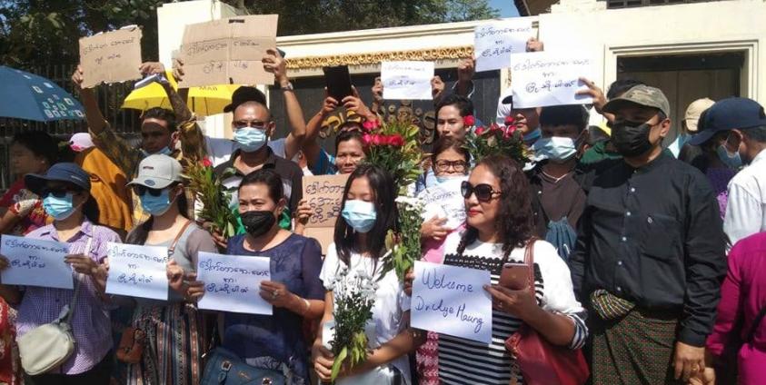 အကြမ်းဖျက်မှုတိုက်ဖျက်ရေးဥပဒေပုဒ်မ ၅၂ (က)(ခ)(ဂ) ဖြင့်အမှုဖွင့်ခံထားရသူ (ဥက္ကဋ္ဌ- ရခိုင်အသင်း စကာင်္ပူ) မှ ကိုဟိန်းဇော်၏ မိခင်ဖြစ်သူ ဒေါ်အုန်းတင်က “ သားပြန်လွတ်လာဖို့အတွက်တော့ မျှော်လင့်နေပါတယ်။ အိမ်ကလူတွေကတော့ စောင့်ဖို့ သွားကြတယ်။ ဒါပေမယ့် အဒေါ်ကတော့ နေမကောင်းလို့ ထောင်နားကိုလည်း မသွားဖြစ်ဘူး။ ထောင်နားကို သွားလိုက်လို့ လွတ်လာတာပါ သူမပါဘူးဆိုရင် အဒေါ်မခံစားနိုင်ဘူး” ဟု ပြောသည်။