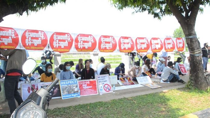 စစ်အာဏာသိမ်းမှု ဆန့်ကျင်ရေး “ရုံးမတက်နဲ့ ရုန်းထွက်” CDM လှုပ်ရှားမှုတွင် ဘဏ်ဝန်ထမ်းအများစု ပါဝင်ခဲ့ပြီး ယနေ့မနက်ပိုင်းအချိန်အထိ မြို့နယ်အသီးသီးရှိ ပုဂ္ဂလိကဘဏ်အများစုကို ပိတ်ထားသည်။