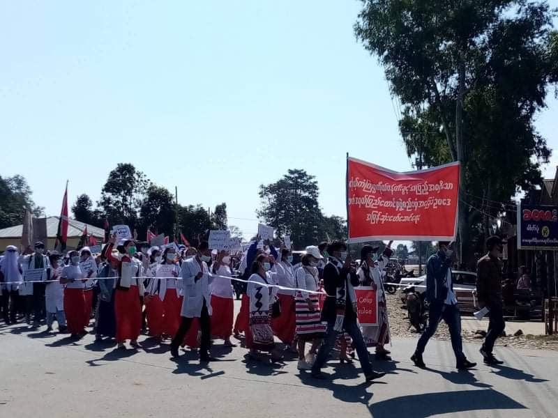 လက်ရှိတွင် ဒေသခံပြည်သူများဦးဆောင်သည့် ဆန္ဒထုတ်ဖော်မှုတွင် ပါဝင်ခဲ့သော ဝန်ထမ်း ၁၅ ဦးခန့်ကို အာဏသိမ်းစစ်ကောင်စီဘက်က ရှာဖွေနေသောကြောင့် ထွက်ပြေးနေရကြောင်း သိရသည်။