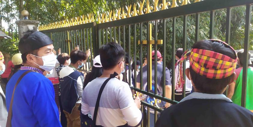 "ဒီနေရာက ကျမ်းစာကျောင်းဖြစ်တဲ့အတွက် ဒီလို နိုင်ငံရေးလာလုပ်တာကို လုံးဝလက်မခံနိုင်ပါဘူး။ ပြီးတော့ စစ်ဘက်ကခန့်ပေးတဲ့ ဘယ်တစ်ဦးတစ်ယောက်ကိုမှလည်း အယုံအကြည်မရှိဘူး။ အဲကြောင့် ကျနော်တို့လူငယ်တွေအားလုံး လာရောက်ဝန်းရံနေခြင်းဖြစ်ပါတယ်။ နောက်နောင်လည်း နိုင်ငံရေးနဲ့ပတ်သက်တဲ့ တွေ့ဆုံမူမျိုး ကမ်းလှမ်းတာမျိုးလည်း မလုပ်ပေးပါကြပါနဲ့ လို့ပြောချင်တယ်” ဟု လာရောက်ဝန်းရံခဲ့ကြသည့် လူငယ်တာဝန်ခံများက ပြောသည်။