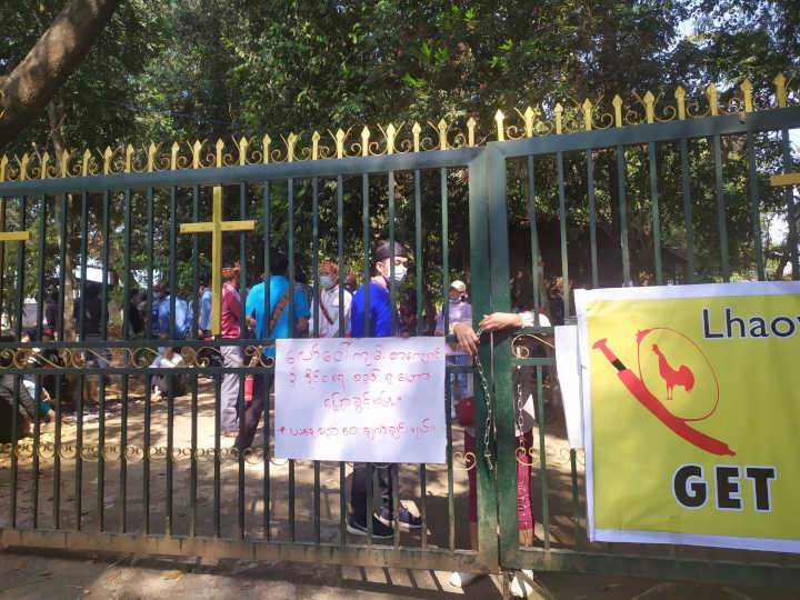“ဒီနေရာက ကျမ်းစာကျောင်းဖြစ်တဲ့အတွက် ဒီလိုနိုင်ငံရေးလာလုပ်တာကို လုံးဝလက်မခံနိုင်ပါဘူး။ ပြီးတော့ စစ်ဘက်ကခန့်ပေးတဲ့ ဘယ်တစ်ဦးတစ်ယောက်ကိုမှလည်း အယုံအကြည်မရှိဘူး။ အဲကြောင့်ကျနော်တို့လူငယ်တွေအားလုံး လာရောက်ဝန်းရံနေခြင်းဖြစ်ပါတယ်။ နောက်နောင်လည်း နိုင်ငံရေးနဲ့ပတ်သက်တဲ့တွေ့ဆုံမူမျိုး ကမ်းလှမ်းတာမျိုးလည်း မလုပ်ပေးပါကြပါနဲ့လို့ပြောချင်တယ်။”ဟု လာရောက်ဝန်းရံခဲ့ကြသူများမှ လူငယ်တစ်ဦးက ဆိုသည်။