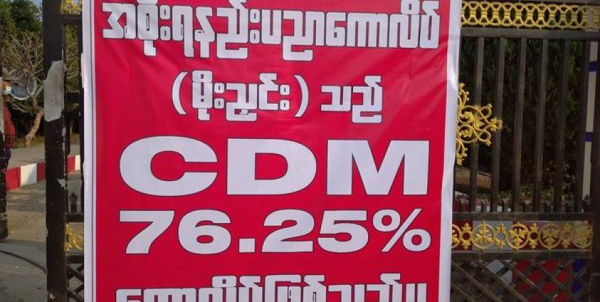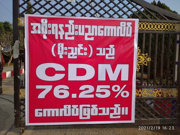 တပ်မတော်သည် အကြောင်းပြချက်ခိုင်ခိုင်မာမာမရှိပဲ နိုင်ငံတော်အာဏာကို ၂၀၂၁ ခုနှစ်ဖေဖော်ဝါရီ ၁ ရက်တွင် လုယူခဲ့ပြီးနောက် တစ်ပြည်လုံးတွင် စစ်အာဏာရှင်ဆန့်ကျင်သည့် ဆန္ဒပြပွဲများပြုလုပ်လျက်ရှိပြီး ပြည်သူ့ဝန်ထမ်းအများစုကလည်း မိမိတို့ရွေးချယ်ထားသည့် အစိုးရမဟုတ်သူများ၏လက်အောက်တွင် တာဝန်မထမ်းဆောင်လိုဟုဆိုကာ CDM ပြုလုပ်လျက်ရှိသည်။