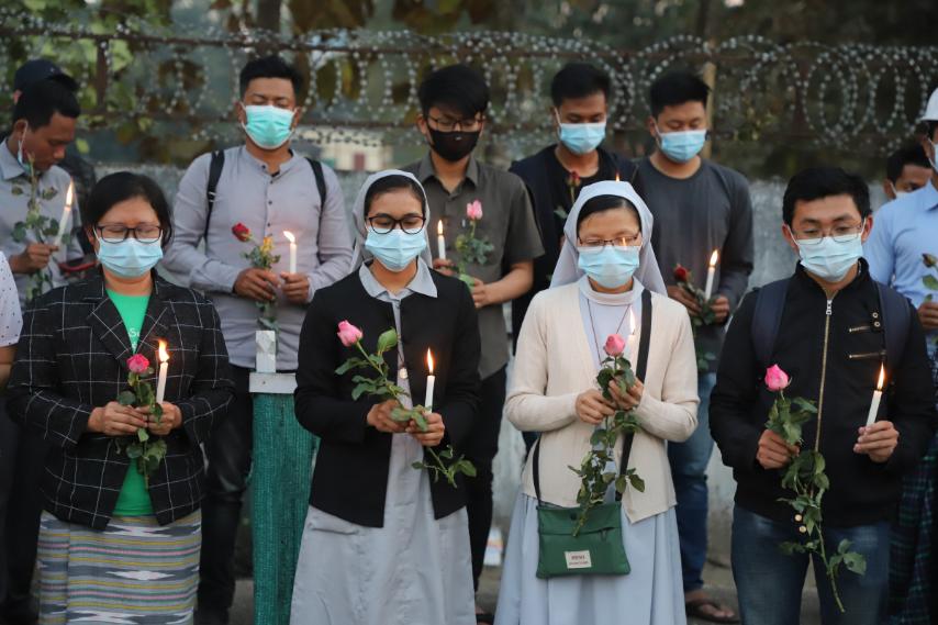 နိုင်ငံတွင်ဖြစ်ပေါ်နေသော အခြေအနေများနှင့်ပတ်သက်၍ ဖယောင်းတိုင်ထွန်းဆုတောင်းပွဲ မြစ်ကြီးနားတွင်ပြုလုပ်