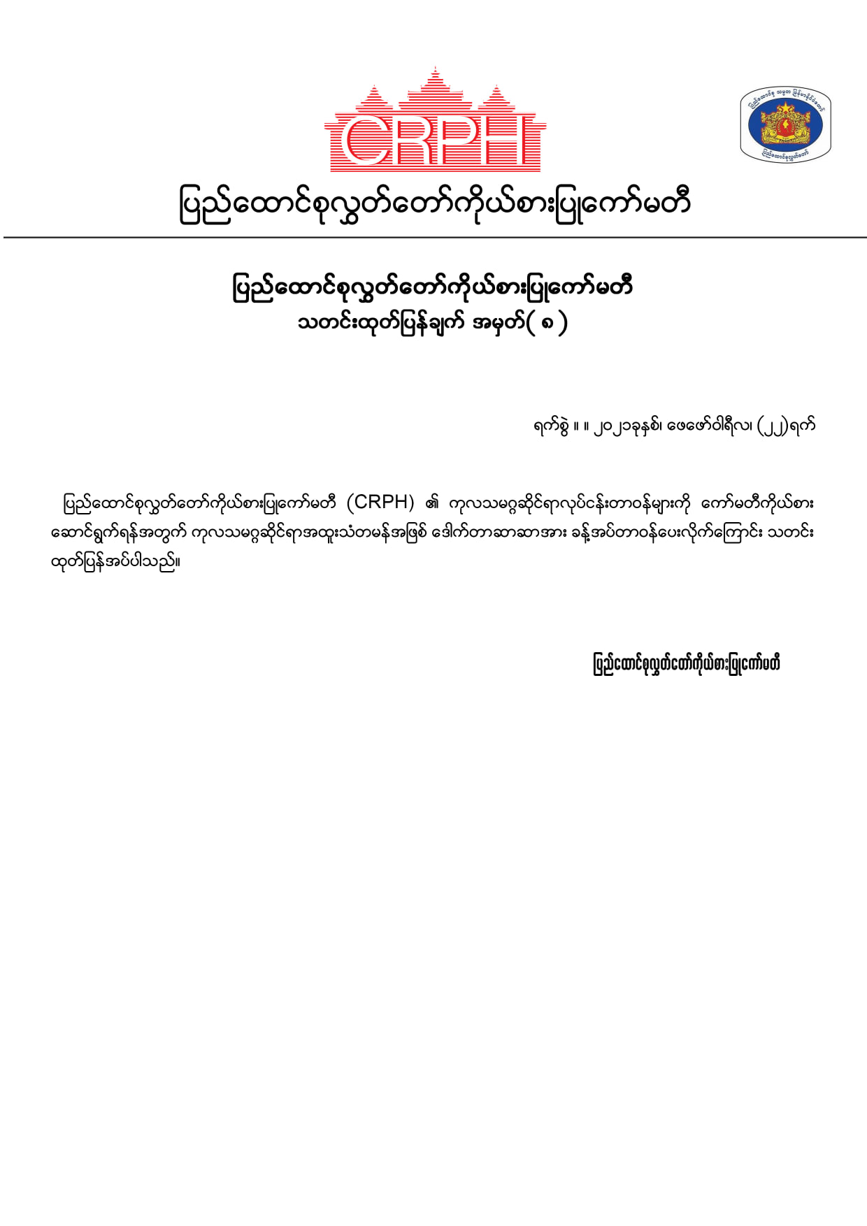 ပြည်ထောင်စုလွှတ်တော် ကိုယ်စားပြု ကော်မတီ(CRPH)ကို ၂၀၂၀ရွေးကောက်ပွဲအနိုင်ရ လွှတ်တော်ကိုယ်စား လှယ်များဖြင့်ဖွဲ့စည်းထားခြင်းဖြစ်ပြီး စစ်အာဏာသိမ်းကောင်စီအားတရားမဝင်ကောင်စီအဖြစ်ကြေ ညာထားကာ မြန်မာနိုင်ငံရှိ ပြည်သူများ၏ ထောက်ခံမှု ရရှိထားသည့် ကော်မတီဖြစ်သည်။