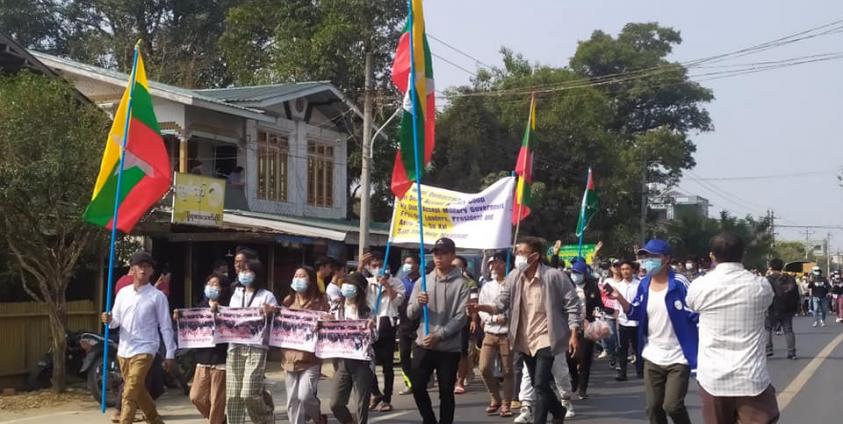 ကချင်ပြည်နယ်၊ ဝိုင်းမော်မြို့တွင် ဖေဖော်ဝါရီလ ၂၈ ရက်နေ့ အထွေထွေသပိတ်နေ့တွင် စစ်အာဏာရှင်ဆန့်ကျင်သည့် ဆန္ဒပြပွဲ မပြုလုပ်နိုင်ရန် ရဲနှင့်စစ်သားများက မနက် ၉နာရီခွဲအချိန်ခန့်တွင် လူစုနေရာတွင် ရောက်လာပြီး လူစုကို ဖြိုခွင်းလိုက်သည်။