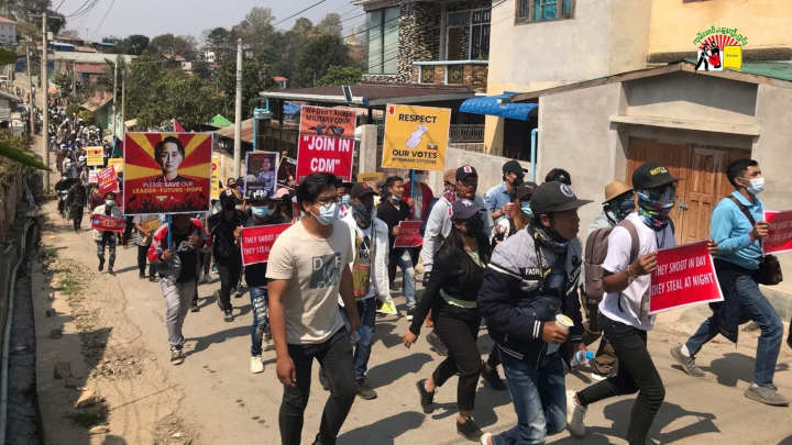 “ ဒီနေ့ တော့ ဆန္ဒထုတ်ဖော်နေတဲ့ သူတွေ ဟာ လမ်းမကြီးအတိုင်းမသွားကြဘူး။ ရပ်ကွက်ထဲပတ်ပြီး စစ်အာဏာရှင်ကိုဆန့်ကျင်ဆန္ဒထုတ်ကြတယ်။ ပြဿနာတော့ မဖြစ်ခဲ့ဘူး။ရပ်ကွက်ပြည်သူတွေလည်း ပူးပေါင်းပေးတယ်” လို့ ဆန္ဒထုတ်ဖော်မှုတွင် သတင်းလိုက်ယူနေတဲ့ သျှမ်းသံတော်ဆင့် သတင်းထောက် ပြောပြချက် အရသိရပါတယ်။