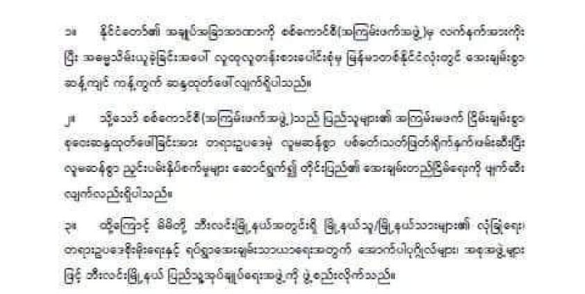 ပြည့်သူ့အုပ်ချုပ်ရေးအဖွဲ့၏ သက်တမ်းသည် ကြားကာလ ပြည်သူ့အုပ်ချုပ်ရေးစာတမ်းပါ အခန်း ၆၊ အပိုဒ် (၁) အတိုင်း ၆ လသက်မှတ်ထားကြောင်း ဖော်ပြထားသည်။