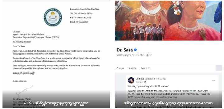 မတ်လ ၆ ရက် ၂၀၂၁ ခု ရက်စွဲပါ အဆိုပါ ပေးစာတွင် ကုလသမဂ္ဂဆိုင်ရာ CRPH အထူးကိုယ်စားလှယ် ဒေါက်တာဆာဆာ ထံသို့ သျှမ်းပြည်ပြန်လည်ထူထောင်ရေးကောင်စီ RCSS ၏နိုင်ငံခြားရေးဌာန လိုဂို၊ ဌာနမှူးယွက်မိန်း (ဖိလစ်) ၏ လက်မှတ်ဖြင့် ရေးသားပေးပို့ခြင်းဖြစ်သည်။