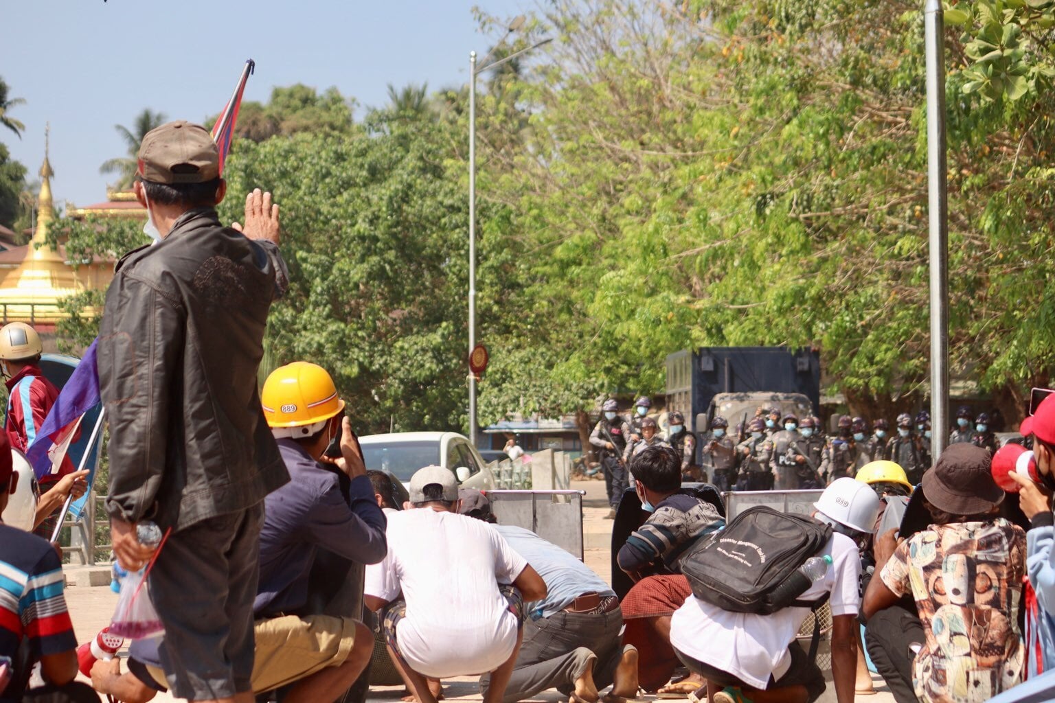 ရေးမြို့ NLD အဖွဲ့ဝင်များနှင့်အတူ ဒေသခံကရင်တိုင်းရင်းသား အင်အား ၃၀၀ ကျော်ခန့် ဆန္ဒပြချီတက်လာစဉ် နံနက် ၁၀ ခွဲကျော်အချိန်ခန့်တွင် လုံခြုံရေးတပ်ဖွဲ့မှ လူစုခွဲရန် အသံချဲ့စက်ဖြင့် ပြောကြားသော်လည်း လိုက်နာခြင်းမရှိသဖြင့် ယင်းသို့ပစ်ခတ်၍ လူစုခွဲခဲ့ရသည်ဟု ဆိုသည်။
