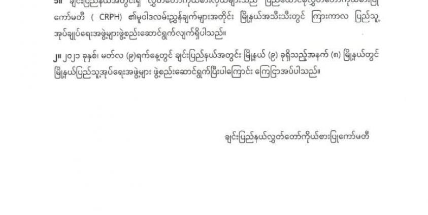 မြို့နယ် ပြည်သူ့အုပ်ချုပ်ရေးအဖွဲ့များအနေဖြင့် ရပ်ကွက်/ကျေးရွာ ပြည်သူ့အုပ်ချုပ်ရေးအဖွဲ့များကို တာဝန်ခံပြီး ပြည်သူ့အုပ်ချုပ်ရေးအဖွဲ့ အချင်းချင်း ချိတ်ဆက်ဆောင်ရွက်သွားကာ ဒေသခံပြည်သူများ၏ လုံခြုံရေး၊ ရပ်ရွာအေးချမ်းသာယာရေးနှင့် တရားစီရင်ရေးကိစ္စရပ်များအတွက် ချင်းအက်/ချင်းရိုးရာဓလေ့ထုံးတမ်းများဖြင့်သာ စီရင်ဆုံးဖြတ်သွားမည်ဖြစ်ကြောင်း ဖော်ပြထားသည်။