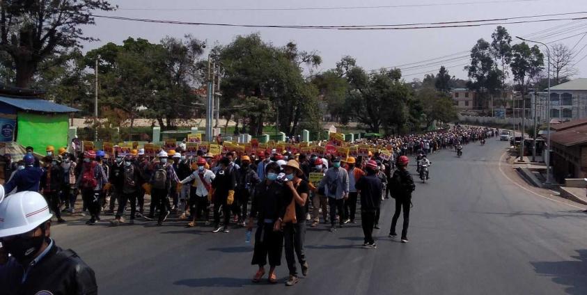 သျှမ်းပြည်တောင်ပိုင်း အောင်ပန်းမြို့ တွင် ယနေ့ (မတ် ၁၃)ရက် စစ်အာဏာ အလိုမရှိ ဆန္ဒထုတ်ဖော်သည့် လူထုသပိတ်စစ်ကြောင်းကို ရဲ၊စစ်တပ်မှ ဖြိုခွင်းပြီး ဆန္ဒထုတ်ဖော်သူ (၁၁)ဦးကိုဖမ်းဆီးသွားပြီး၊ တဦး ရာဘာကျည်ထိမှန်ခဲ့ကြောင်း သတင်းရရှိသည်။