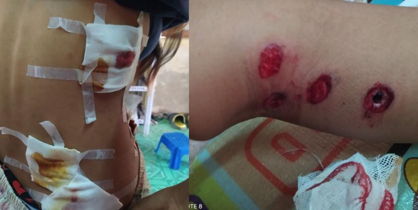 “ ထိခိုက်ဒဏ်ရာရသူ ၈ဦးခန့်တော့ရှိမယ်။ ရာဘာကျည်ထိတာက တော့ မိန်းကလေး ၂ဦး၊ ယောင်္ကျား၁ဦးပါ။ မိန်းကလေးတယောက်က သတိလစ်သွားတယ်။ တယောက်တော့ အောက်ပိုင်းထိတယ်။ အမျိုးသားက ဦးခေါင်းထိတယ်။ အိမ်ထဲထိပစ်ခတ်နေတယ်။ တယောက်ကိုလည်းဖမ်းဆီးသွားတယ်” ဟု တောင်ကြီး ဒေသခံတဦး ပြောပြချက်အရသိရသည်။