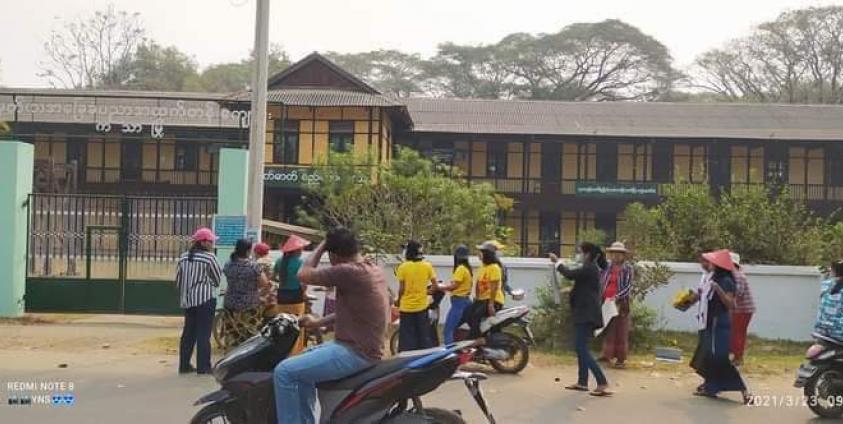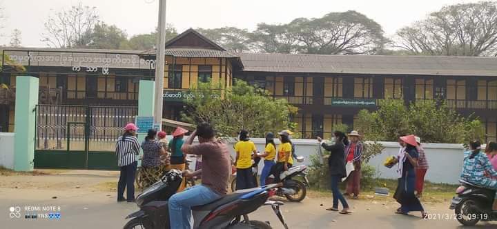 ကသာမြို့တွင် စစ်ကောင်စီ၏ညွှန်ကြားချက်ကိုလိုက်နာပြီး အခြေခံပညာ မွမ်းမံသင်တန်းတက်ရောက်နေသော ပညာရေးဝန်ထမ်းများအား ကသာမြို့နေပြည်သူများက သံပုံးတီးမောင်းထုတ်ခြင်းကို ယနေ့မတ်၂၃ရက်နေ့နံနက်ပိုင်းကပြုလုပ်ခဲ့သည်။