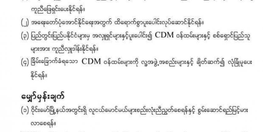 ယင်းအဖွဲ့ကို ရည်ရွယ်ချက်လေးရပ်ဖြင့် ဖွဲ့စည်းလိုက်ခြင်းဖြစ်ပြီး ၎င်းတို့မှာ ပြည်သူများ၏ နိုင်ငံရေးအကြပ်အတည်းများကို ထိရောက်စွာကူညီဖြေရှင်းပေးနိုင်ရန်၊ အရေးတော်ပုံအောင်နိုင်ရေးအတွက် ထိရောက်စွာ ပူးပေါင်းလုပ်ဆောင်နိုင်ရန်၊ ပြည်တွင်း/ပြည်ပနိုင်ငံများမှ အလှူရှင်များနှင့်ပူးပေါင်း၍ CDM ဝန်ထမ်းများနှင့် စစ်ရှောင်ပြည်သူများအား ကူညီလှူဒါန်းနိုင်ရန်နှင့် ခြိမ်းခြောက်ခံရသော CDM ဝန်ထမ်းများကို လူ့အဖွဲ့အစည်းများနှင့် ချိတ်ဆက်၍ လုံခြုံမှုပေးနိုင်ရန်တို့ဖြစ်ကြောင်း သိရသည်။