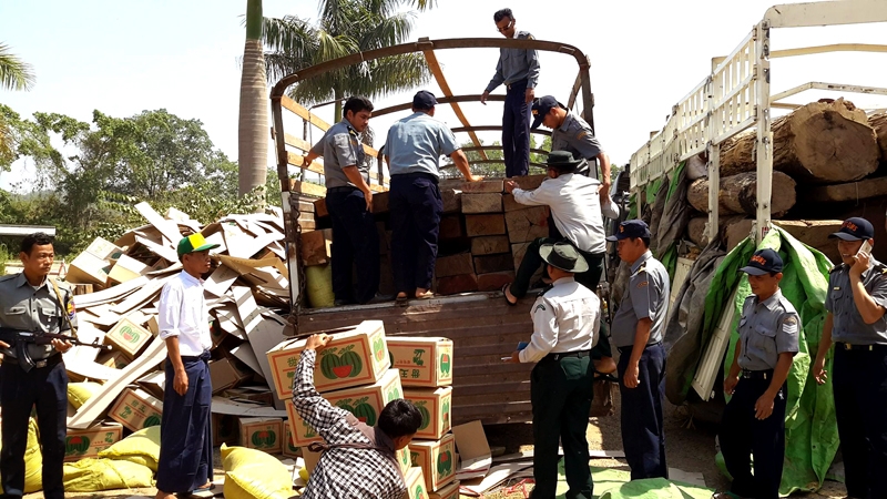 အဆိုပါ ပိတောက်သစ်လုံးများ သယ်ဆောင်လာသည့် ၂၂ ဘီးကားမှာ စစ်ဆေးရေးအဖွဲ့မှ စစ်ဆေးဖမ်းဆီးနေမှုကြောင့် ရေပူဂိတ်နှင့် လေးဖာလုံအကွာတွင် ရပ်ထားခြင်းဖြစ်ပြီး ရေပူအဖွဲ့မှ မသင်္ကာ၍ သွားရောက်စစ်ဆေးခဲ့ရာ ကားသမားမှာထွက်ပြေးသွားပြီး ကားစပယ်ယာတစ်ဦးနှင့်အတူ ဖရဲသီးဖာများဖုံးအုပ်လျက် ပိတောက်သစ်လုံးများကို ဖမ်းဆီးရမိခဲ့ခြင်းဖြစ်ကြောင်းသိရသည်။