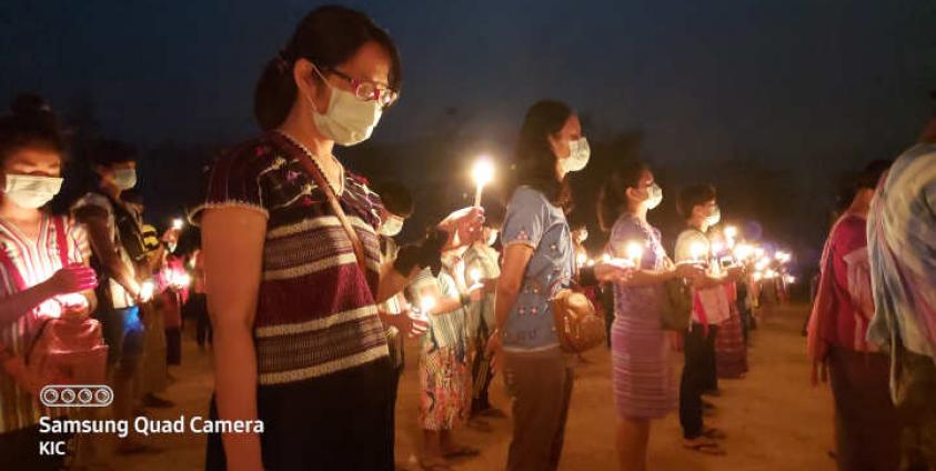 ယနေ့ကျရောက်သော တပ်မတော်နေ့ကို ဆန့်ကျင်သောအားဖြင့် ကရင်အမျိုးသားအစည်းအရုံး-KNU နယ်မြေ၌ "နွေဦးတော်လှန်ရေး တွင် ကျဆုံးသွားသော အာဇာနည် သူရဲကောင်းများအား ဂုဏ်ပြုခြင်းနှင့် ဝတ်ပြုဆုတောင်းခြင်း"ခေါင်းစဉ်ဖြင့် ဖယောင်းတိုင်မီးထွန်း ဝတ်ပြုဆုတောင်းပွဲတစ်ခု ယနေ့ (မတ် ၂၇) ညနေပိုင်းတွင် ပြုလုပ်ကျင်းခဲ့သည်။