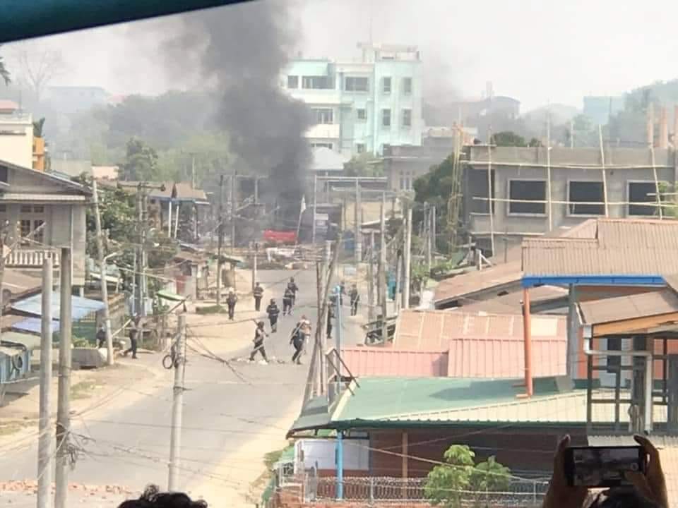 မြစ်ကြီးနားမြို့တွင် အာဏာရှင်ဆန့်ကျင်သည့် လူထု သပိတ်စစ်ကြောင်းများကို ရဲနှင့်စစ်သားများက ကျည်အစစ်ဖြင့် ပစ်ခတ်ဖြိုခွဲမှုများ ဆက်တိုက်ပြုလုပ်နေသည်။