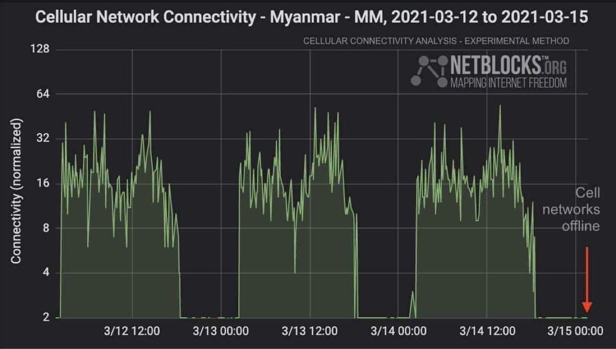 စစ်အာဏာသိမ်းပြီးနောက်ပိုင်း ရက်ပိုင်းကစတင်ပြီး နိုင်ငံတစ်ဝှမ်း အင်တာနက်လိုင်းများကို အချိန်အကန့်သတ် ပိတ်ပင်ခဲ့ပြီးနောက် ၊ မတ်လ ၁၄ ရက်နေ့က စတင်ပြီး မိုဘိုင်းအင်တာနက်များကို အပြီးအပိုင် ပိတ်လိုက်ခြင်း ဖြစ်သည်။