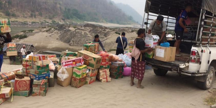 The Reporters သတင်းဌာန၏ လူမှုကွန်ရက်စာမျက်နှာမှ တဆင့် သတင်းဖော်ပြချက်တွင် “အခုတော့ ဒီမှာ ရှိ နေတဲ့ ပစ္စည်းအားလုံးကို နေရာရွှေ့သွားပါပြီ ဒီနေ့မနက် အစောပိုင်းမှာပဲ။ ဒီက ဒေသခံတွေရဲ့ အကြောင်းကြား လာတဲ့အချက်တွေအရတော့ ဒီကပစ္စည်းတွေ ကမ်းစပ်မှာရှိတဲ့ လှေတွေပေါ်တင်ထားပါပြီ။ လှေ လေးစီး၊ ငါးစီး လောက် ရှိတယ်။ ဒေသခံတွေရဲ့ လှေတွေနဲ့ပဲ မြန်မာဘက်အခြမ်းမှာ ရှိတဲ့ စစ်ပြေးဒုက္ခသည်တွေကို ကူညီပေး ဖို့ ပါ။ အီသူထဆိုတဲ့ နေရာနဲ့ အနီးဆုံးကိုသွားပို့ကြမှာပါ။ သံလွင်မြစ်ကမ်းဘေးတစ်လျှောက် ဒီကရင်ဘက်ခြမ်းက လူတွေ လာယူကြမှာပါ” ဟု ပြောသည်။