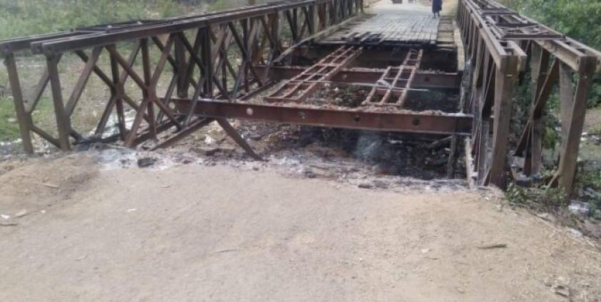 တမူးမြို့ရှိ နယ်မြေ ၁၃နဲ့၁၄ ဆက်သွယ်ထားသည့် တံတားအမှတ် ၁၄ ရှိ ရင်ကင်းတဲနှင့် နန်းဖာလုံ ဘုရားကျောင်းပေါက် စစ်တပ်ကင်းစခန်းတို့ မီးလောင်ခဲ့ခြင်းဖြစ်ပြီး တမူး-နန်းဖာလုံကို ဆက်သွယ်ထားသည့် ချောင်းနက်ကြီး မြို့မ ၁၄ သံဘောင်ဘေလီ သစ်သားတံတား မီးလောင်ပျက်စီးခဲ့ခြင်းဖြစ်ပြီး မီးလောင်သည့် အကြောင်းရင်းကို မသိရသေးကြောင်း သိရသည်။