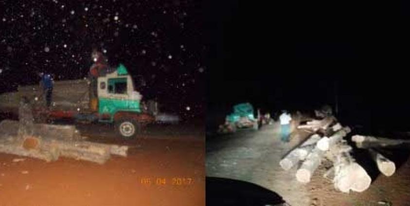 မေလ ၄ ရက်နေ့ ည ၁၀ နာရီခန့်အချိန်တွင် ဖရူဆိုမြို့နယ် မာခရောရှေကျေးရွာနှင့် လောဂျာကျေရွာအကြား တရားမဝင်သစ်တင်ဆောင်လာသော ယာဉ်များကို လက်ထောက် ညွှန်ကြားရေးမှူး၊ ခရိုင်သစ်တောဦးစီးဌာနမှ ဦးဆောင်သော သစ်တောဝန်ထမ်း ၆ ဦးမှ တွေ့ရှိခဲ့ကြောင်း သိရသည်။