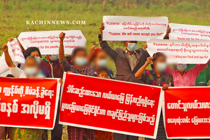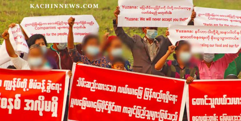 ဟူးကောင်းချိုင့်ဝှမ်းဒေသ ကချင်လွတ်လပ်ရေးတပ်မတော် KIA တပ်မဟာ ၂ အောက် တပ်ရင်းများနှင့် အာဏာသိမ်းစစ်တပ်တို့ကြား တိုက်ပွဲပုံမှန်ဖြစ်ပွားနေသောကာလတွင် ဒေသခံများက ယုဇနကုမ္ပဏီအလိုမရှိကြောင်း အရဲစွန့် ဆန္ဒဖော်ထုတ်ခဲ့ကြခြင်း ဖြစ်ကြောင်း သိရသည်။