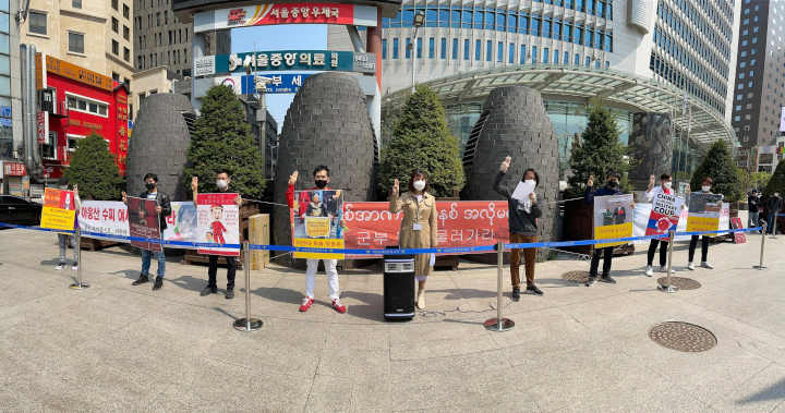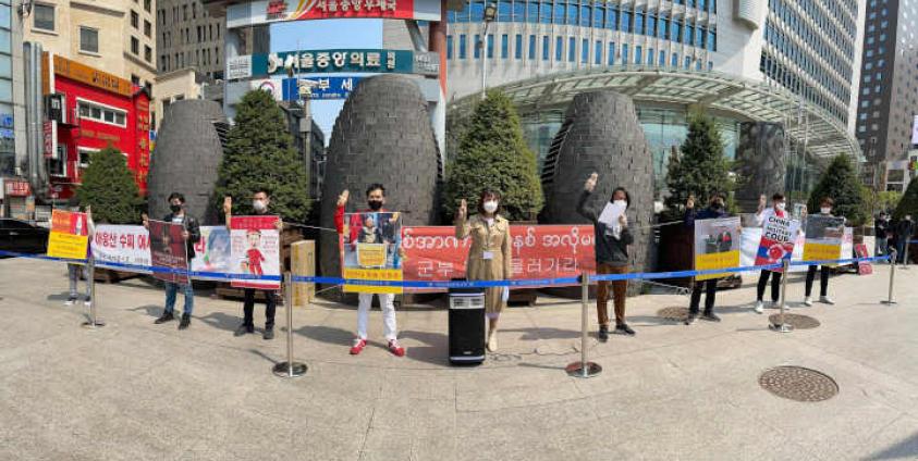 ဆိုးလ်မြို့တွင် Covid-19 ဥပဒေအရ ၉ဦးစီဖွဲ့ကာ အလှည့်ကျစနစ်ဖြင့် “တရုတ်နိုင်ငံက အကြမ်းဖက်စစ်အုပ်စုကို ထောက်ပံ့မှုများ ချက်ချင်းရပ်၊ CRPH တရား၀င် အစိုးရအဖြစ် အသိအမှတ်ပြု၊ တရုတ်နိုင်ငံ မြန်မာ့ဒီမိုကရေစီအရေးကို မနှောက်ယှက်နှင့်၊ တရုတ်နိုင်ငံ မြန်မာ့ဒီမိုကရေစီကို အသိအမှတ်ပြု၊ အာဏာရှင်စနစ် အလိုမရှိ၊ UN တင်ပြချက်ကို လက်ခံပေး၊ မြန်မာပြည် အာဏာရှင်စနစ်မှ လွတ်မြောက်ပါစေနှင့် အရေးတော်ပုံ အောင်ရမည်”ဟူသော ကြွေးကြော်သံ များနှင့် တရုတ်သံရုံးရှေ့တွင် ဆန္ဒပြခဲ့ကြပြီး ကိုရီးယားအစိုးရနှင့် ကိုရီးယားပြည်သူများက မြန်မာ့ဒီမိုကရေစီအရေးကို ပိုမို ကူညီအားပေးရေး ထောက်ခံလက်မှတ်များ ကောက်ခံခဲ့ကြသည်။