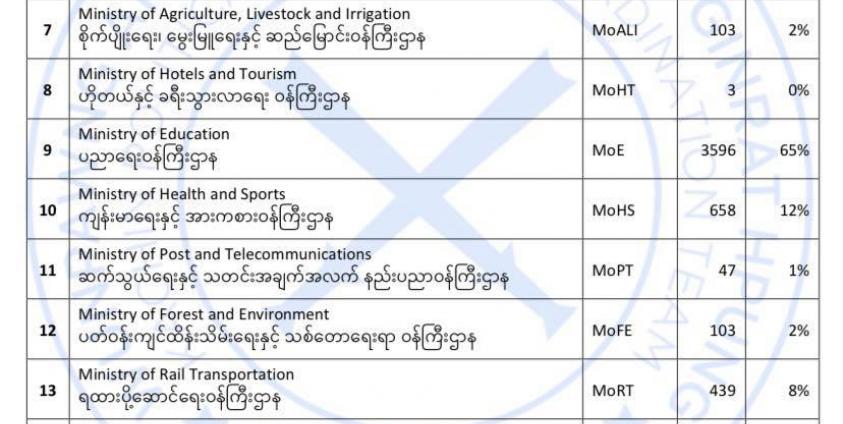 ကချင်ပြည်နယ်၏ CDM ပါဝင်သည့်အရေအတွက် ပညာရေးဝန်ကြီးဌာနက ထိပ်ဆုံးမှရပ်တည်