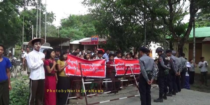 ရုံးထုတ်စစ်ဆေးနေစဉ် ဆရာတော်၏ ဘုန်းတော်ကြီးသင်ပညာရေးကျောင်းတွင် ပညာသင်ယူနေကြသည့် ကျောင်းသား/ ကျောင်းသူများက “ခင်ဗျားတို့ မတရားလုယူသွားသော ကျွန်တော်တို့ ဆရာတော်အား ပြန်ပေးပါ ” ဟူသည့် ဗီနိုင်းများကို ကိုင်ဆောင်လျက် ဆန္ဒဖော်ထုတ် တောင်းဆိုခဲ့ကြသည်။