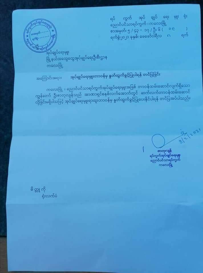 “ညနေ ၃ နာရီလောက်မှာ ဖမ်းခံရတာလို့သိရတယ်၊ သူက စစ်ကောင်စီတက်လာတော့ နူတ်ထွက်လိုက်တာ၊ ရဲနဲ့စစ်တပ်တွေက သူ့နေအိမ်ကို ဝင်ရှာတယ် သူ့ကိုမတွေ့ဘူး နောက် သူရှောင်ပုန်းနေတဲ့အိမ်ကို ဘယ်လိုသိသွားလဲတော့မသိဘူး အဲဒီမှာ ဝင်ဖမ်းသွားတာ” ဟု ကလေးမြို့ဒေသခံတစ်ဦးက ပြောသည်။
