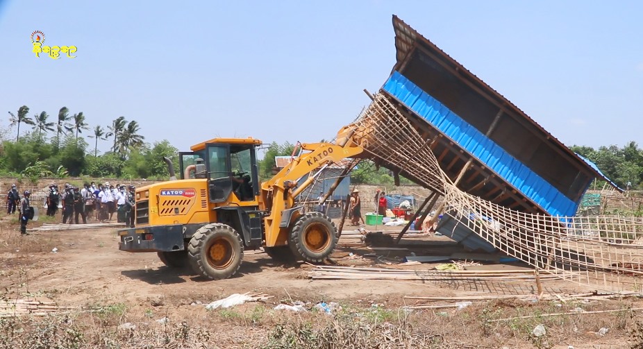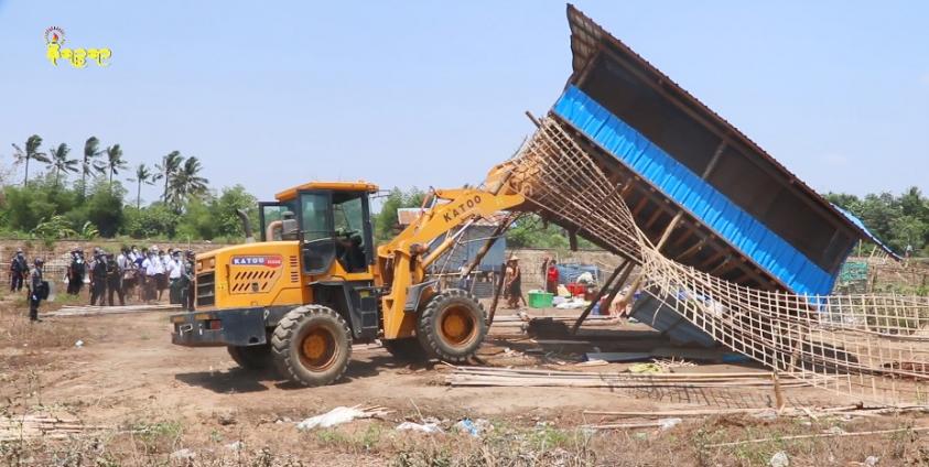 ယင်းနေရာတွင် လွန်ခဲ့သော ၂နှစ် ၃ နှစ်ခန့်က ဆောက်လုပ်ထားသော အိမ် (၁၀) လုံးခန့် အပါအဝင် တဲအိမ်ပေါင်း ၁၀၀ ကျော်ခန့် ဖြိုဖျက်ခံလိုက်ရသည်ဟု ကာယကံရှင်များက ပြောဆိုကြသည်။