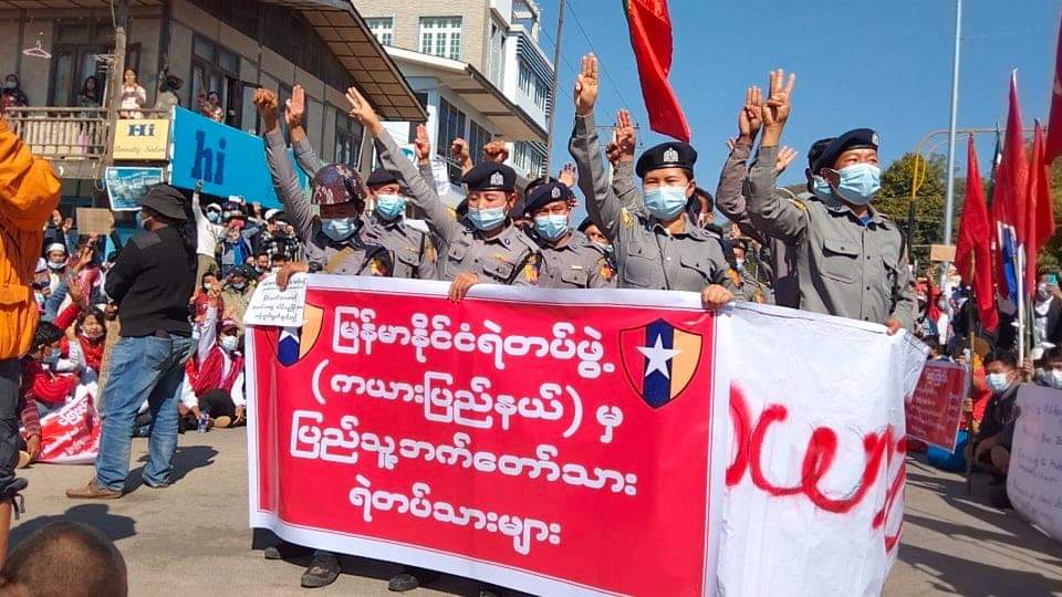 လူထုနှင့်အတူ စစ်အာဏာရှင်စနစ်ကို ဆန့်ကျင်သည့် အာဏာဖီဆန်ရေးလုပ်ရှားမှုကို ကယားပြည်နယ်မှ ရဲတပ်ဖွဲ့ဝင် ၄၀ ကျော်က ဖေဖော်ဝါရီ ၁၀ ရက် ပြည်သူလူထုရှေ့တွင် စတင်ပါဝင်လာခဲ့ပြီး ရဲတပ်သား၊ ဒု-ရဲအုပ်၊ တပ်ကြပ်၊ ယာဉ်ထိန်းရဲအဆင့်ရှိသည့် ရဲဝန်ထမ်းများပါဝင်ကြောင်း သိရသည်။