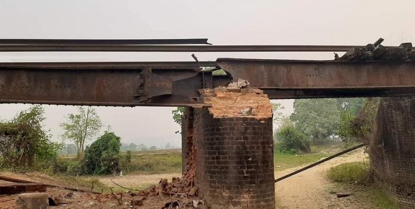 ဟိုမြို့အထွက် မြောက်ဘက် ကြာကြီးကွင်းကြာတွင် ကပ်ယက်ရှိသော တဝက်ချောင်းတံတားနှင့် မီးရထားလမ်း ၂ခု မိုင်းခွဲခံရကြောင်း ဒေသခံတစ်ဦးက ယခုလိုပြောသည်။