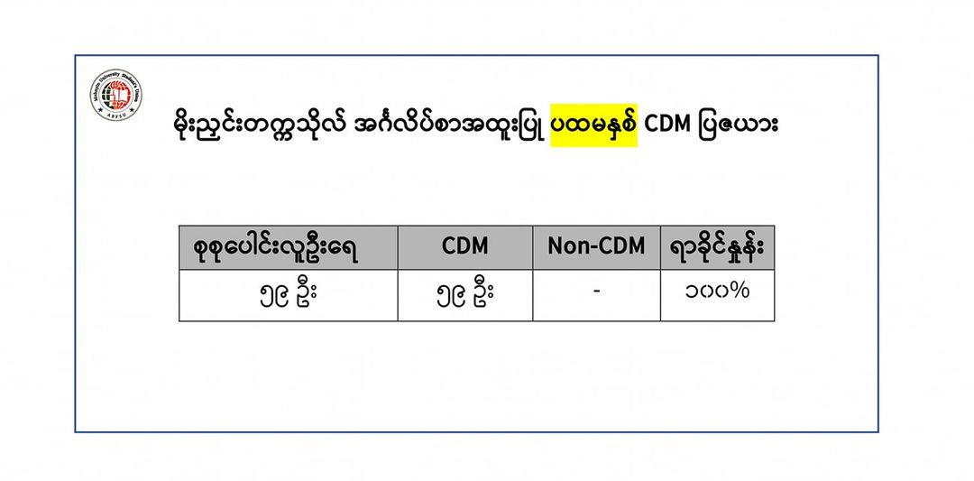 စစ်ကောင်စီက မိုးညှင်းတက္ကသိုလ် ပြန်လည်ဖွင့်လှစ်ပါက မတက်ရောက်မည့် ကျောင်းသားစာရင်း မိုးညှင်းတက္ကသိုလ်ကျောင်းသားများသမဂ္ဂက ကောက်ခံလျက်ရှိကြောင်း သိရသည်။