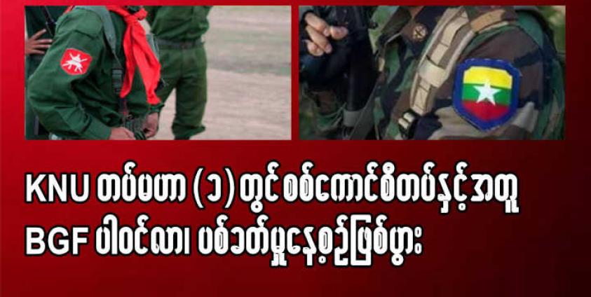 ကေအဲန်ယူ ကရင်အမျိုးသားအစည်းအရုံး၏ သထုံခရိုင်၊ တပ်မဟာ(၁)နယ်မြေတွင် စစ်ကောင်စီနှင့်အတူ နယ်ခြား စောင့်တပ်-BGF တပ်ဖွဲ့များ ပါဝင်လာပြီးနောက်ပိုင်း KNU တပ်မဟာ(၁) လက်အောက်ခံတပ်ဖွဲ့နှင့် ပစ်ခတ်မှုများ နေ့စဉ် ဖြစ်လာနေသည်ဟု KNU ဒေသခေါင်းဆောင်များထံမှ သိရသည်။
