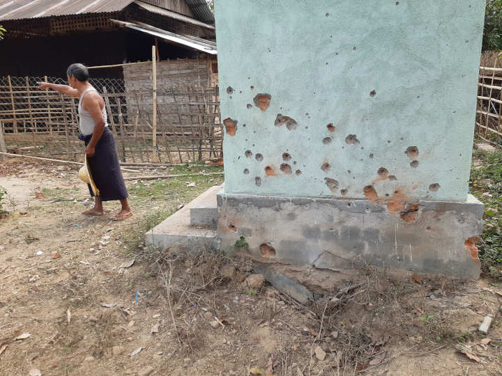 ယနေ့နံနက်ပိုင်းတွင် ကုန်းလောကျေးရွာထဲအထိ ပစ်ခတ်မှုများ၊ လက်နက်ကြီးကျည်၊ လက်နက်ငယ်များ ကျရောက်ပေါက်ကွဲခဲ့သည့်အတွက် ဒေသခံရွာသားများမှာ ကတုတ်ကျင်းများနှင့် ဘုန်းတော်ကြီးကျောင်းတို့တွင် ပုန်းနေကြရာ လက်နက်ကြီးတစ်လုံး ကုန်းလောကျေးရွာ ဘုန်းကြီးရှေ့တွင် ပေါက်ကွဲခဲ့ခြင်းဖြစ်သည်ဟု ဒေသခံများက ပြောသည်။
