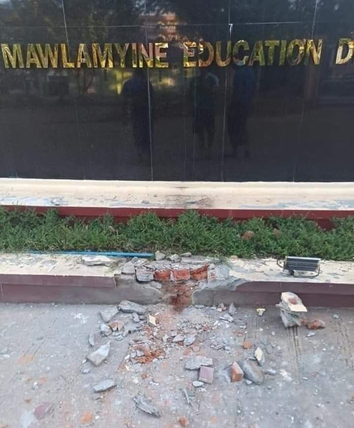 ယနေ့နံနက် ၄ နာရီဝန်းကျင်ခန့်က မော်လမြိုင် ပညာရေးကောလိပ်ကျောင်းရှေ့ ဆိုင်းဘုတ်အနီး ပေါက်ကွဲမှုဖြစ်ပွားခဲ့ပြီး ကျောင်းညကင်းစောင့် အမျိုးသားတစ်ဦး ထိခိုက်ဒဏ်ရာရရှိခဲ့သည်။