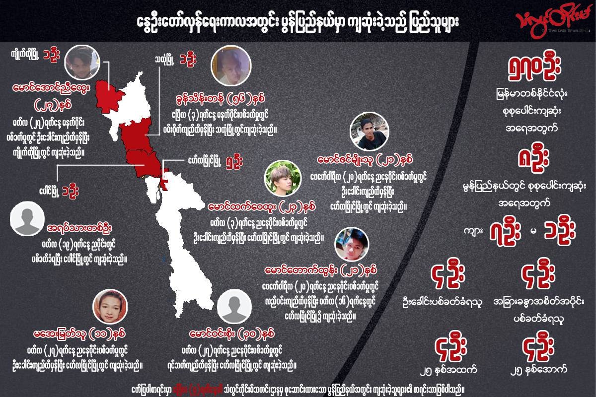 ပုံအညွှန်း - နွေဦးတော်လှန်ရေးတွင် မွန်ပြည်နယ်အတွင်း ကျဆုံးသွားသူတွေရဲ့ အမည်၊ အသက်နှင့် ကျဆုံးခဲ့သည့် မြို့နယ်များကို စုစည်းဖော်ပြပေးထားပါသည်။