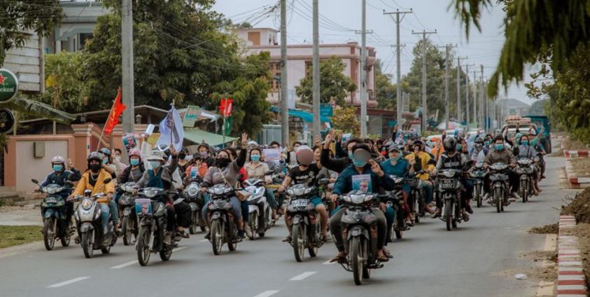 မြစ်ကြီးနားမြို့တွင် ယနေ့ စစ်အာဏာရှင်ဆန့်ကျင်ရေး ဆိုင်ကယ်သပိတ်အပြင် လမ်းလျှောက်သပိတ်ဖြင့်လည်း ဆန္ဒဖော်ထုတ်ခဲ့ကြသည်။