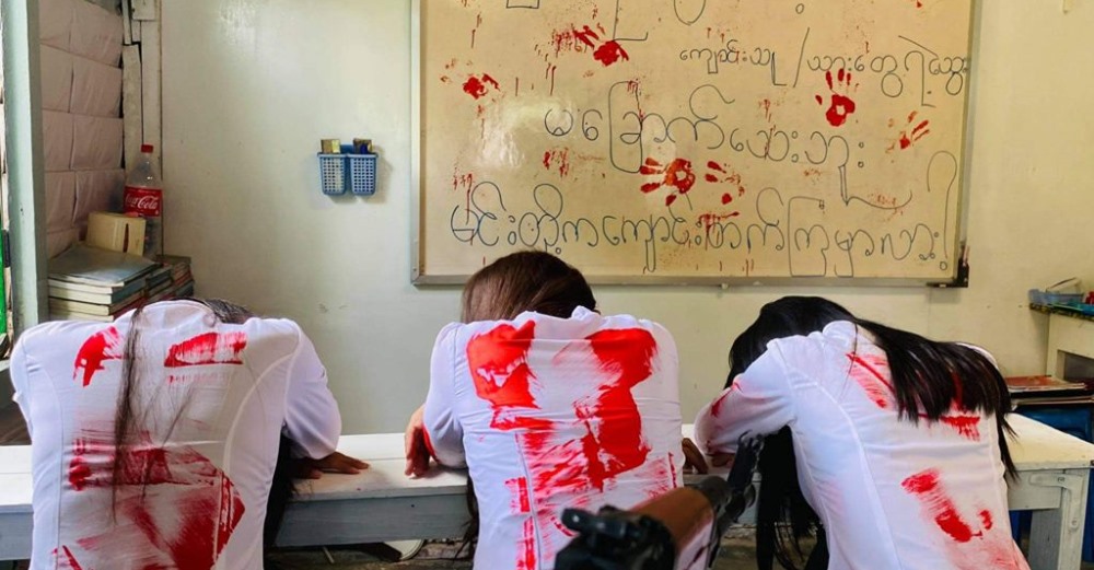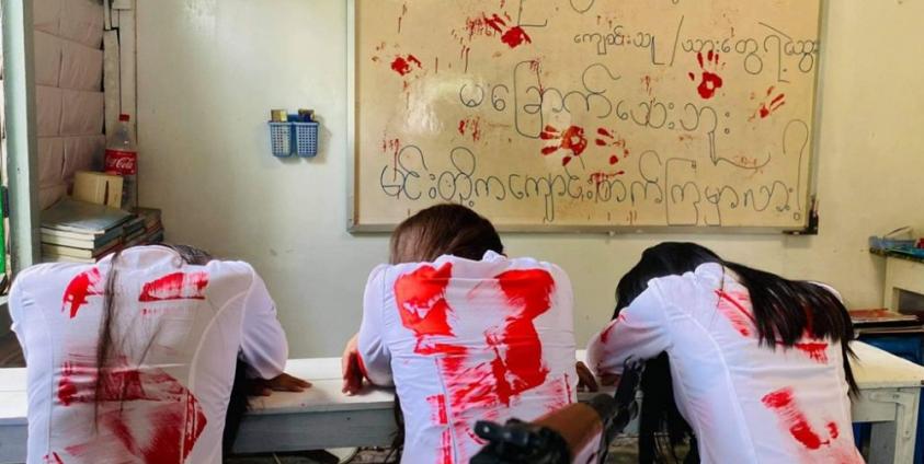 အလားတူ မြန်မာနိုင်ငံတစ်ဝှမ်းတွင်လည် “စစ်ကျွန်ပညာရေးစနစ်ကို အလိုမရှိ” “ကျဆုံးသွားတဲ့ ကျောင်းသူ/သားတွေရဲ့သွေး မခြောက်သေးဘူး... မင်းတို့က ကျောင်းတက်ကြမှာလား” ပညာရေးဝန်ထမ်းများ စစ်ကောင်စီကိုမပူးပေါင်းရန် လူငယ်များက လမ်းပေါ်ထွက် တောင်းဆိုဆန္ဒထုတ်ဖော်ကြသည်။
