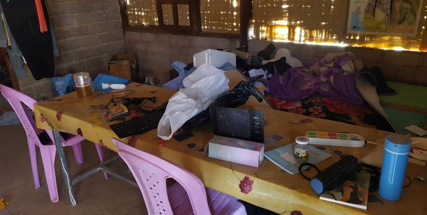 ရွှေဖီမြေ သတင်းအေဂျင်စီက အယ်ဒီတာတစ်ဦးက “ဝင်းတံခါးသော့ကို သံဖြတ်စက်လိုဟာမျိုးနဲ့ပဲ သေချာသုံးပြီးတော့ ဖြတ်ပြီးတော့ ဝင်လိုက်တယ်။ နောက် အထဲက ရုံးခန်းကိုခတ်ထားတဲ့ သော့ကိုလည်း အဲ့အတိုင်းပဲ ဖြတ်ပြီးမှဝင်တယ်။ ပြီးရင် ရုံးခန်းထဲရယ် အိပ်ခန်းသုံးခန်းလုံးရယ်ကို အိပ်ယာခင်းတွေ၊ စောင်တွေ၊ အဝတ်အစားထည့်တဲ့ ပုံးတွေ၊ အဝတ်အစားအိတ်တွေ အကုန်လုံး မွှေနှောက်သွားတယ်။ ရုံးမှာ ကျနော်တို့ ရွာတွေဘက်သွားရင် လှူဖို့ရထားတဲ့ စောင်အသစ်တွေပေါ့နော် အဝတ်အစားတွေရယ်၊ Song Box တချို့တွေရယ် အဲ့ဒါတွေ အကုန်လုံးလည်း မွှေထားတယ်။ မွှေပြီးတော့ ဒီတိုင်းပဲ ပစ်ထားခဲ့တာပေါ့။ တွေ့မိသလောက်တော့ ပစ္စည်းယူတာမျိုးတော့ မတွေ့ရဘူး” ဟု ပြောသည်။