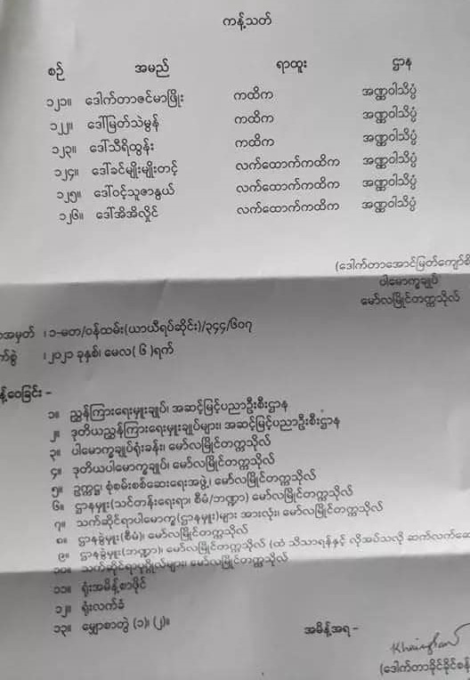 အလားတူ မေ ၆ ရက်နေ့တွင်လည်း မော်လမြိုင်နည်းပညာတက္ကသိုလ် ဌာနအသီးသီးမှ ဆရာ/ဆရာမ (၁၀) ဦးကိုလည်း လုံလောက်သော အကြောင်းပြချက်မရှိဘဲ တာဝန်ချိန်ပျက်ကွက်ခြင်းနှင့် ခွင့်စည်းကမ်းများကို ဖောက်ဖျက်ပြီး ခွင့်မဲ့ပျက်ကွက်ခြင်းတို့ကြောင့် နိုင်ငံဝန်ထမ်းနည်းဥပဒေများ နည်းဥပဒေ ၁၇၂ အရ ၂၀၂၁ ခုနှစ်၊ မေလ ၃ ရက်နေ့မှစ၍ တာဝန်မှ ယာယီရပ်ဆိုင်းလိုက်ကြောင်း သိရသည်။
