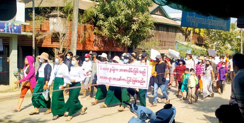 ဓါတ်ပုံ - ၂၀၂၁ ခုနှစ်၊ ဖေဖော်ဝါရီလက တောင်ကုတ်မြို့တွင် စစ်အာဏာသိမ်းမှုကို ကန့်ကွက်ဆန္ဒပြခဲ့မှုမြင်ကွင်း။