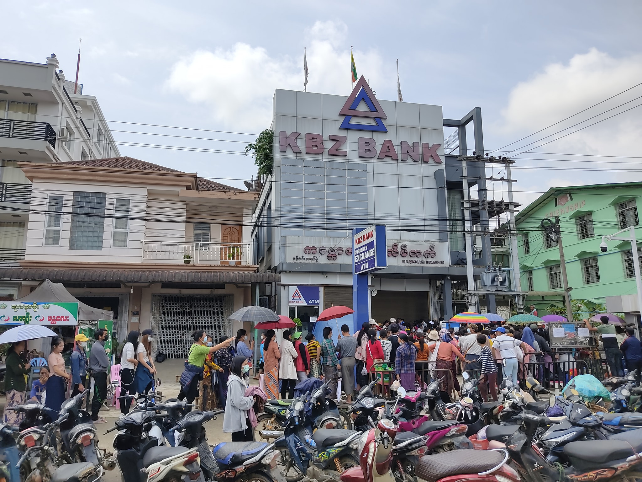 စစ်အာဏာသိမ်းယူမှု ရက်ပေါင်း (၁၀၀) နီးပါးရှိလာပြီး မြန်မာတဝှမ်းရှိ ဘဏ်များရှေ့တွင် မိမိဘဏ်အပ်ငွေများအား ပြန်လည်ထုတ်ယူရန် မိုးမလင်းခင်ကတည်းက တန်းစီစောင့်ဆိုင်းနေရကြောင်း သိရသည်။
