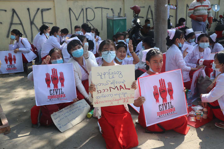 “တစ်ဆက်တည်းမှာပဲ CDM လုပ်တဲ့ ဆရာဝန်တွေ ကျန်းမာရေးလုပ်သားတချို့လည်း ရှိပါတယ်။ ကျနော်တို့လည်း တစ်ချို့ဒေသတွေမှာ တွဲပြီးတော့ ဒီ ကျန်းမာရေးဝန်ဆောင်မှုတွေကို ဝိုင်းပြီးတော့ ကူညီပေးတဲ့ဟာလည်း ရှိပါတယ် ဆိုတော့ အထူးသဖြင့်ကတော့ ကျနော်တို့ကတော့ ကျန်းမာရေးအဖွဲ့အစည်းဖြစ်တဲ့အတွက် ဒီကျန်းမာရေးဆိုင်ရာ CDM အတွက်ကို ကူညီပံ့ပိုးဖို့လည်း ကျနော်တို့ တောင်းဆိုထားတာရှိပါတယ်” ဟု စောနေထူးက ပြောသည်။