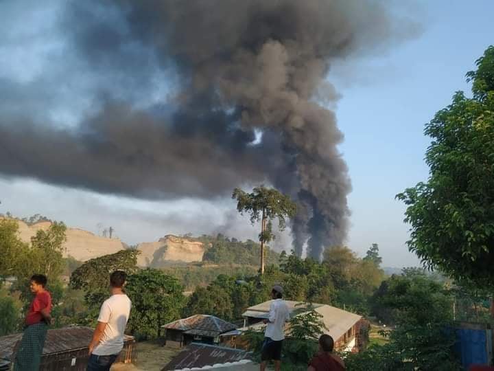 ထို့နောက် နံနက် ၇ နာရီ အချိန်ခန့်ကစတင်၍ စစ်ကောင်စီဘက်က လေယာဉ်စစ်ကူများရောက်လာကာ လေယာဉ်လေးစီဖြင့် အဆိုပါနေရာများသို့ ဗုံးကြဲတိုက်ခိုက်ခဲ့သည်ဟု ခန္တီးဒေသခံများက ပြောသည်။