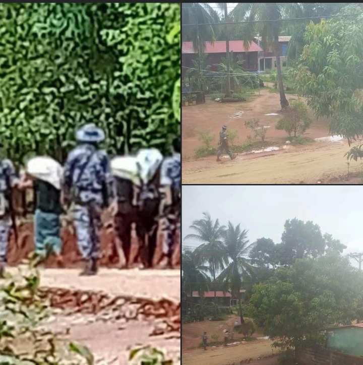 ယနေ့ မွန်းလွဲပိုင်းတွင် ရွာရှိ ကုန်စုံဆိုင်နှင့် လက္ဘရည်ဆိုင်တွဲ၍ဖွင့်ထားသော စျေးဆိုင်တစ်ခုတွင် ရွာသူရွာသားများ လက်ဖက်ရည်သောက်နေကြစဉ် စစ်အုပ်စုတပ်ဖွဲ့ဝင်များ ရောက်ရှိလာပြီး ရွာသား (၄) ဦးကို အကြမ်းဖက်ဖမ်းဆီးရိုက်နှက်ပြီး ဈေးဆိုင်ရှိ အရက်များနှင့် ပစ္စည်းများကို ယူဆောင်ခဲ့ကြောင်း မျက်မြင်တွေ့သူတွေက ပြောပါတယ်။
