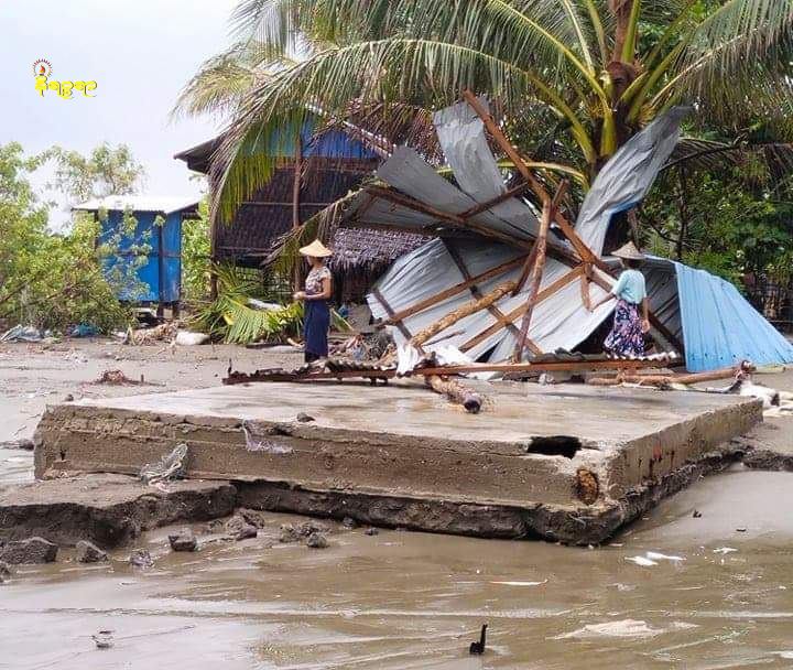 “ရွာသားငါးဆယ်လောက် ဒီနေ့မနက်မှာပဲ ဘေးလွတ်ရာကို ရွှေ့ပြောင်းသွားကြပါပြီ။ နှစ်တိုင်း ဒီအချိန်ရောက်လို့ မုန်တိုင်းရှိတယ်ဆိုရင် ရွာသားတွေ ဘေးလွတ်ရာကို ထွက်ပြေးရစမြဲပါ။ အခုလည်း လှိုင်းလုံးကြီးတွေလာပုတ်လို့ အိမ်တွေ ပျက်စီးသွားပါတယ်။ အိမ်တွေကတော့ တစ်ရက်တည်းနဲ့ ပျက်စီးသွားတာမျိုး မဟုတ်ပါဘူး။ မိုးရာသီဆိုရင် အဲဒီလှိုင်းဒဏ်ကြောင့် တစ်နေ့ကို ငါးလုံး၊ ဆယ်လုံး အဲဒီလို ပျက်စီးနေတာပါ။ ရွာက မြေနိမ့်ပိုင်းဖြစ်နေပြီမို့ တစ်ရွာလုံး ရေပြည့်လျှံနေပါတယ်” ဟု ပြောသည်။