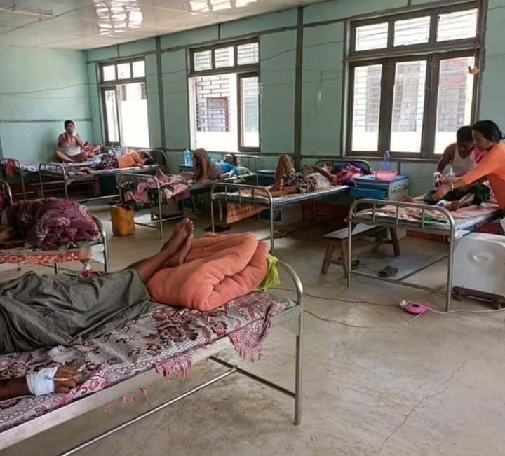 “၁၁ ရက်နေ့ကနေစပြီးတော့မှ ဒီနေ့အထိဆိုရင် ၂၅ ယောက်ရှိတယ်၊ ကျမတို့ သံသယရှိပြီးတော့ OPD (ပြင်ပလူနာဌာန) လာပြတဲ့သူတွေထဲက စစ်ပြီးတွေ့တာ၊ အခုဆေးကုသမှုခံယူနေတာက ဆေးရုံမှာရှိတာ ၇ ဦးပဲရှိတယ်၊ ကျန်တဲ့သူတွေက ပြန်ကောင်းသွားပြီ” ဟု အထက်တန်းသူနာပြု ဆရာမကပြောသည်။